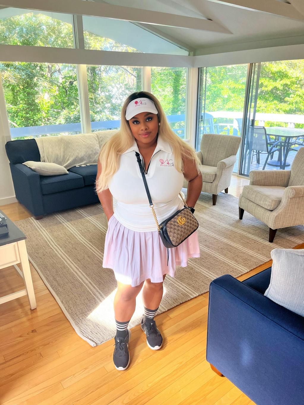 I rocked this during my Martha's Vineyard golf trip. I wore it twice because I loved it so much. The black piping adds such a stylish touch. The fabric is comfortable and not stiff.